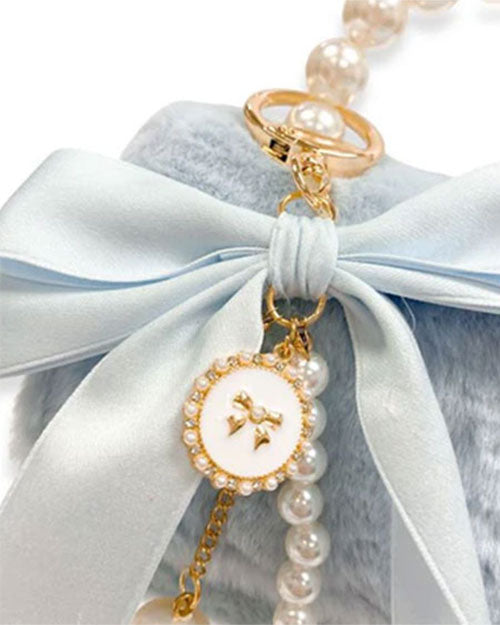 DOE A DEAR | Furry Purse with Bow & Pearl Charm | Blue