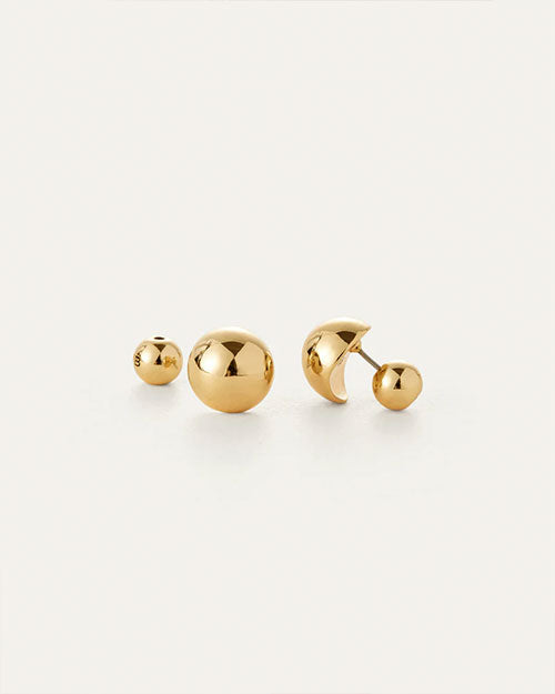 A luminous pair of stud earrings with a dome silhouette, creating the effect of a perfect sphere. This elevated design lays flat, curving toward your ear and slightly hugging the lobe. Finished in high-polish 14k gold.