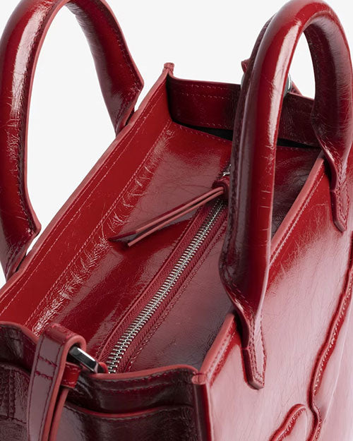 Crafted from crinkled vintage leather, this tote seamlessly transitions from hand-carry to shoulder or cross-body wear with its dual short handles and adjustable removable strap. A secure zip closure protects your essentials, while interior patch pockets keep items organized. The iconic embossed wings signature adds a distinctive touch of understated elegance to this versatile everyday companion.