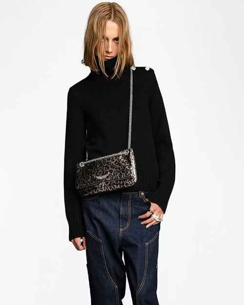 ZADIG & VOLTAIRE | Rock II Metal Leopard Clutch | Silver