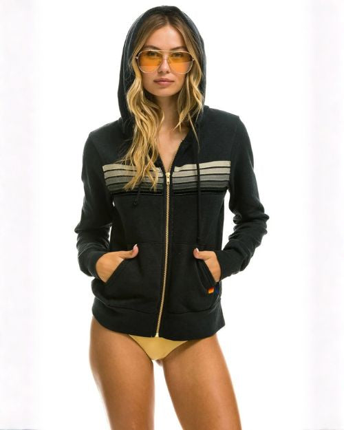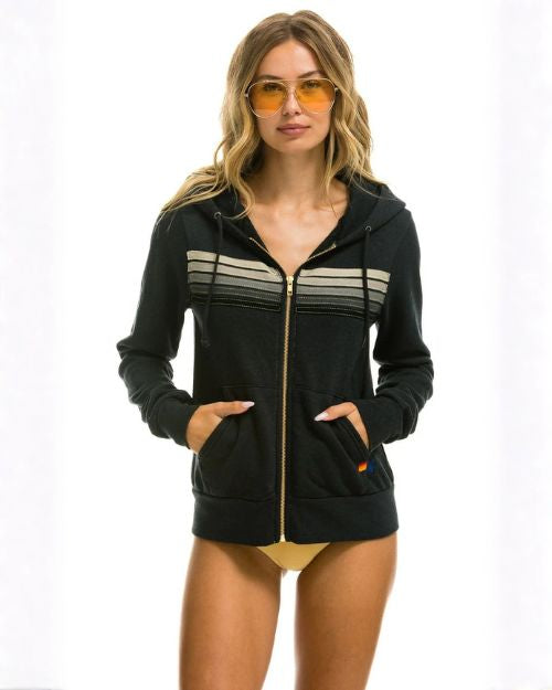 AVIATOR NATION | 5 Stripe-Zip Hoodie | Charcoal and Grey